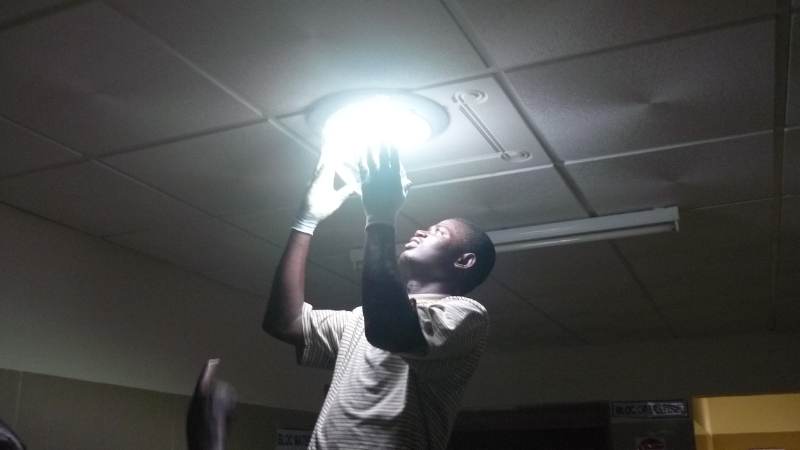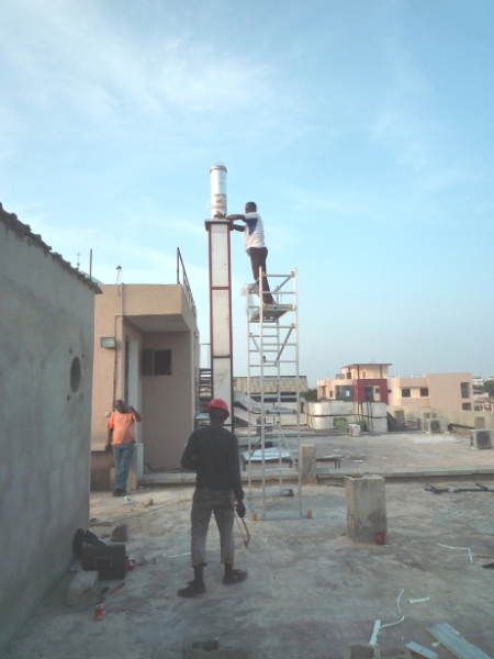 | Pose de 04 puits de lumière Solarspot 250 pour l'éclairage d'un couloir à la Clinique BIASA de Lomé (2013-2015). Quatre (04) mètres de tubes de rallonge pour placer le capteur au-dessus de l'apatame (à construire) afin de bien capter les rayons lumineux du soleil. |